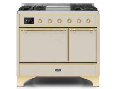 40" ILVE Majestic II Dual Fuel Natural Gas Range with Brass Trim in Antique White - UMD10FDQNS3/AWG