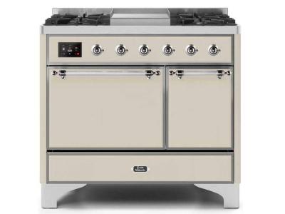 40" ILVE Majestic II Dual Fuel Natural Gas Freestanding Range with Chrome Trim in Antique White - UM