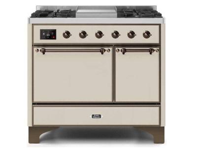 40" ILVE Majestic II Dual Fuel Natural Gas Freestanding Range with Bronze Trim in Antique White - UM