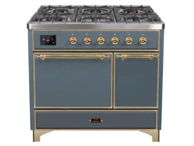 40" ILVE Majestic II Dual Fuel Natural Gas Range with Brass Trim in Blue Grey - UMD10FDQNS3/BGG NG