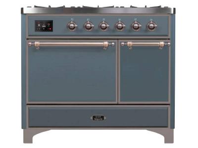 40" ILVE Majestic II Dual Fuel Natural Gas Freestanding Range with Copper in Blue Grey - UMD10FDQNS3