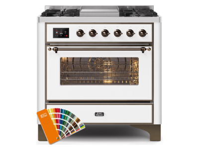 36" ILVE 3.5 Cu. Ft. Majestic II Dual Fuel Natural Gas Range in Custom RAL Color with Bronze Trim -