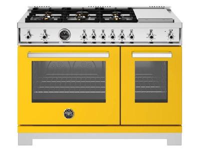 48" Bertazzoni All Gas Range with 6 Brass Burners and Griddle in Giallo - PRO486BTFGMGIT