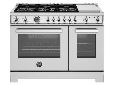 48" Bertazzoni Professional Series Dual Fuel Range with 6 Brass Burners in Stainless Steel - PRO486B