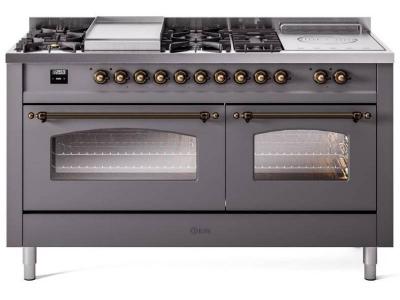 60" ILVE Nostalgie II Dual Fuel Liquid Propane Freestanding Range in Matte Graphite with Bronze Trim