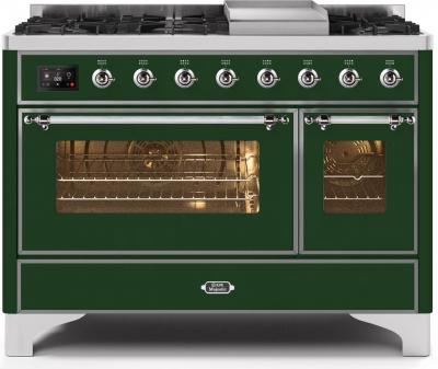48" ILVE Majestic II Dual Fuel Range in Emerald Green with Chrome Trim - UM12FDNS3EGC-NG