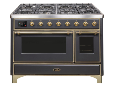 48" ILVE Majestic II Dual Fuel Range in Matte Graphite with Brass Trim - UM12FDNS3MGG-LP