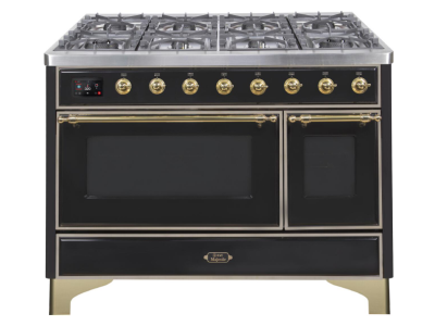 48" ILVE Majestic II Dual Fuel Range in Glossy Black with Brass Trim - UM12FDNS3BKG-NG