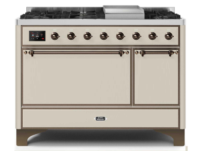 48" ILVE Majestic II Dual Fuel Natural Gas Freestanding Range in Antique White with Bronze Trim - UM
