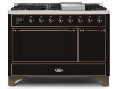 48" ILVE Majestic II Dual Fuel Natural Gas Freestanding Range in Glossy Black with Bronze Trim - UM1