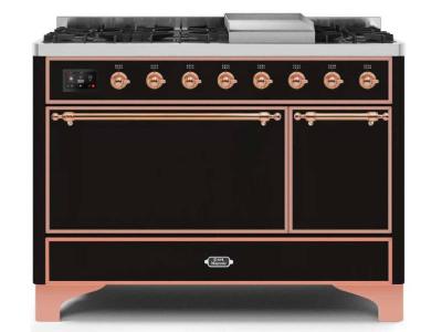 48" ILVE Majestic II Dual Fuel Natural Gas Freestanding Range in Glossy Black with Copper Trim - UM1