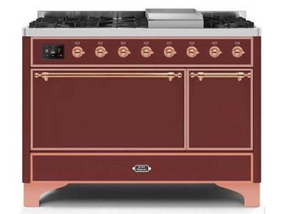 48" ILVE Majestic II Dual Fuel Natural Gas Freestanding Range in Burgundy with Copper Trim - UM12FDQ