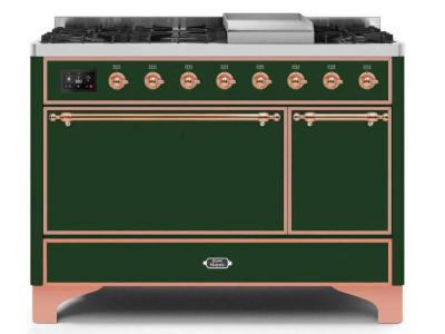 48" ILVE Majestic II Dual Fuel Natural Gas Freestanding Range in Emerald Green with Copper Trim - UM