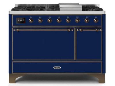 48" ILVE Majestic II Dual Fuel Natural Gas Freestanding Range in Blue with Bronze Trim - UM12FDQNS3/