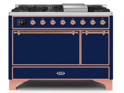 48" ILVE Majestic II Dual Fuel Natural Gas Freestanding Range in Blue with Copper Trim - UM12FDQNS3/
