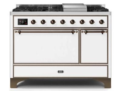 48" ILVE Majestic II Dual Fuel Natural Gas Freestanding Range in White with Bronze Trim - UM12FDQNS3