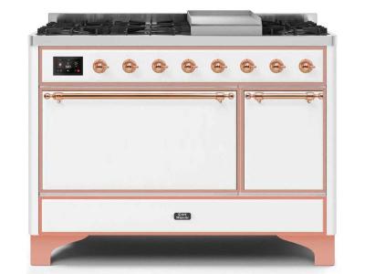 48" ILVE Majestic II Dual Fuel Natural Gas Freestanding Range in White with Copper Trim - UM12FDQNS3