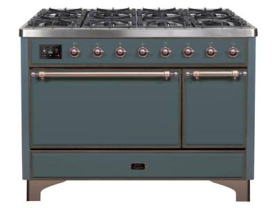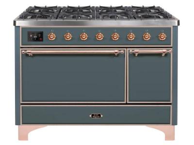 48" ILVE Majestic II Dual Fuel Natural Gas Freestanding Range in Blue Grey with Copper Trim - UM12FD