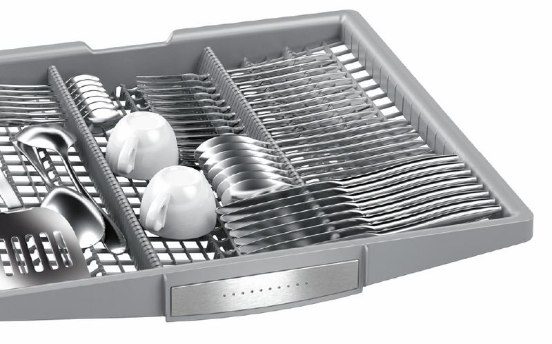 With 30% more loading area*, the 3rd rack provides extra space for flatware, large utensils and measuring cups. Its V shape leaves room below for tall items. *Compared to a Bosch dishwasher with 2 racks