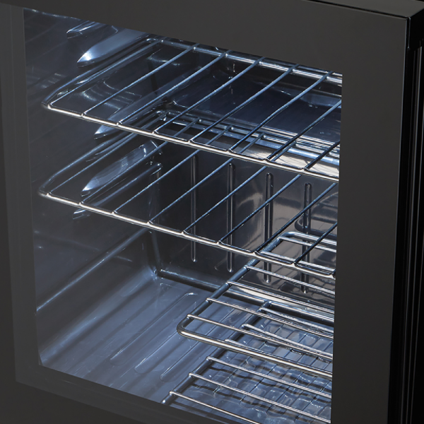 This classy unit is ideal for any bar, office, or kitchen setting and the all-black cabinet design with smoked glass, will easily fit in with any existing room décor.