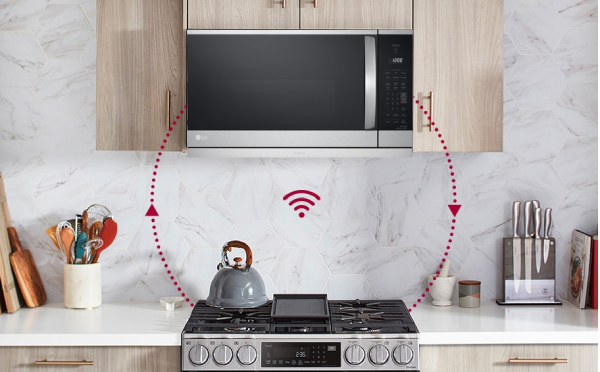 Connect your compatible Wi-Fi enabled LG microwave and range through the ThinQ app to enjoy the convenience of automatic pairing. Your microwave's vent and light will automatically turn on and off when your range cooktop is turned on or off, so you won't have to lift a finger when cooking.