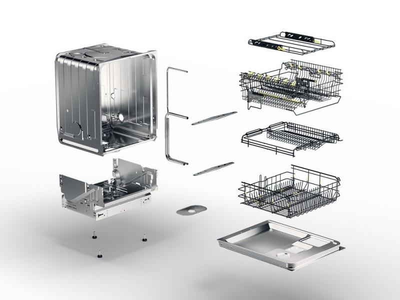 8 Steel™ - more steel less plastic No other material lasts as long as steel. And no other dishwashers have as many details made from steel instead of plastic as ASKO dishwashers. In fact, eight of the most important components in our dishwashers are made of high-quality steel rather than plastic: the container, loading racks, spray pipe, spray arms, strainers, outer base, feet, and inner door. By using more steel and less plastic, we make our machines last longer.