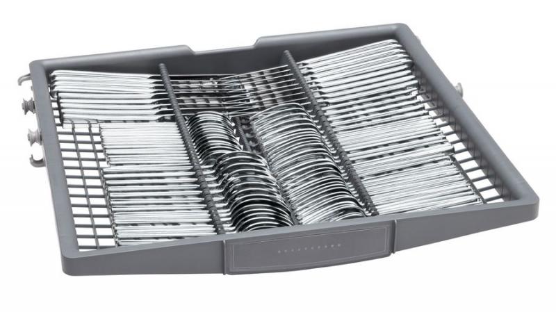 With 30% more loading area*, the 3rd rack provides extra space for flatware, large utensils and measuring cups. Its V shape leaves room below for tall items. *Compared to a Bosch dishwasher with 2 racks