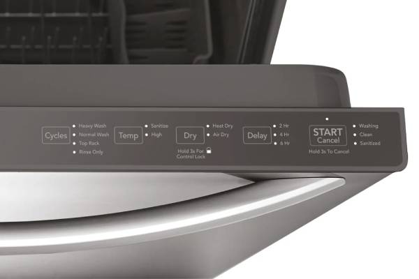 The Frigidaire 24 in. built-in dishwasher offers triple the cleaning power giving your dishes a more effective clean with our three spray arms that achieve better water coverage. Plus, enjoy an enhanced dry with MaxDry™, which delivers better results reducing the need for towel drying. This quiet dishwasher (52 dBA) also includes DishSense® Sensor Technology, a sanitize option and is Energy Star® certified.