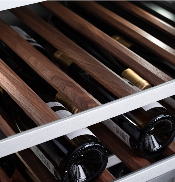 Enjoy easy access to your wine collection with smooth-glide shelves. These shelves extend fully, allowing you to effortlessly select the perfect bottle for any occasion.