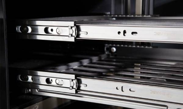 The zero-clearance hinge system on this unit makes for a flush fit integrated built-in that will blend seamlessly with neighbouring cabinets. Surrounding surfaces will also be safe from bumps and nicks due to these ingeniously designed door joints