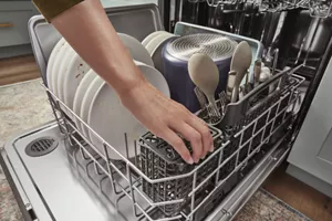Load more, run less in this dishwasher with 3rd rack. Load hard-to-fit utensils or measuring spoons in the 3rd rack to free up more space for dishes below. You can even fit taller items where you want thanks to the adjustable rack. Plus, you can move or separate the flexible 3-piece silverware basket to make extra space.