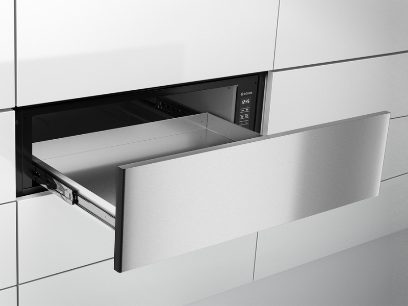You can install a warming drawer below your wall oven, speed oven, or steam oven to keep food and plates perfectly warm before serving. It offers three settings - high, medium, and low.