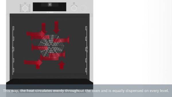 This function distributes heat quickly and evenly throughout the oven, making it possible to cook on up to three levels simultaneously. Sweet and savoury dishes can be cooked at the same time without mixing flavor.