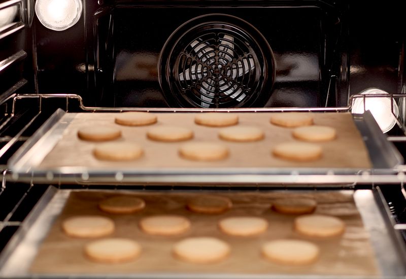 A third heating element and fan at the back of the oven evenly circulates air around the cavity so you get even golden results, no matter where you place your pan.