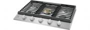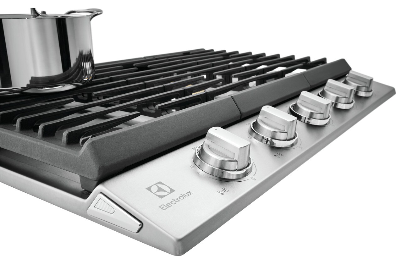 Full-framed linear grates, edge-to-edge front controls with sturdy LED backlit knobs and a premium brass burner accent lend to the sleek design that make this cooktop a focal point of your kitchen