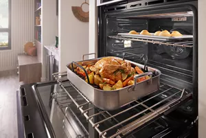 Makes it easy to cook with large or heavy bakeware. Sure-grip handle and smooth roll-out simplify loading and unloading.