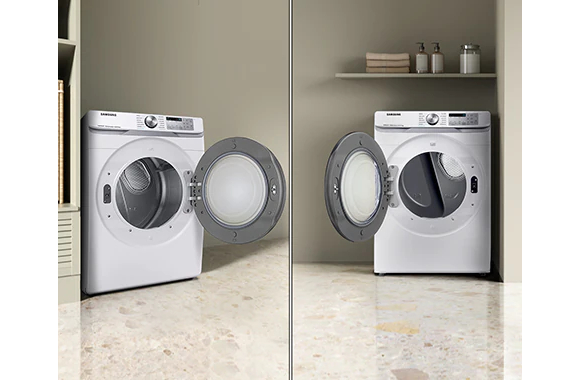 Give your home a sleek and modern look with a seamless design. This dryer has a shallow depth*, so it fits within your existing laundry space without sacrificing any capacity thanks to our new, wider drum. Also, a new control panel design provides better visibility, so it is easy to use even when stacked.