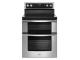 Get dinner on the table quickly with this electric double oven range. True convection cooking lets you cook food faster. Convection Conversion will do the math for you to adjust cooking times and temperatures. Skip preheating this kitchen range for frozen favorites like pizza, lasagna, chicken nuggets, fries or pies, thanks to Frozen Bake™ technology. The FlexHeat™ triple radiant element is like having three elements in one to fit small pots and pans and make room for larger cookware on the range stove. And if you make a mess, AquaLift® self-cleaning technology provides this kitchen range with odor-free cleaning without harsh chemicals in only 50 minutes.