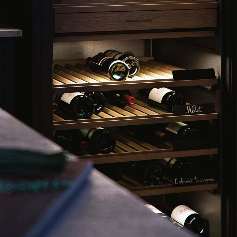 The ASKO Wine Climate Cabinet holds 190 bottles, which are stored in spacious, telescopic shelving systems that are easy to access. Small built-in chalkboards let you label your collection on the shelves.