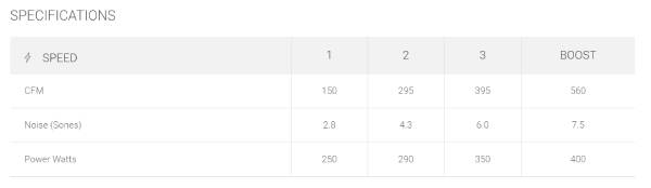 | Variable Air Management | Yes (set to 295, 395, 600 CFM) |