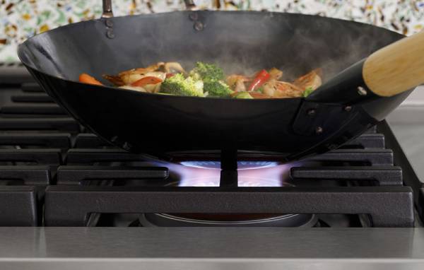 The cooktop on this commercial style range features an entire arsenal of burners that give you the right amount of heat and control to perfectly cook anything from delicate sauces to expertly seared meats.