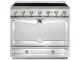 The single oven "Albertine" range is the baby to the CornuFé family. With one large multi-function convection oven, and seven unique cooking modes, the range has five powerful brass gas burners, or a five zone induction rangetop constructed of durable ceramic glass that easily wipes clean, and one large storage drawer. The CornuFé 90 is available in our original collection of four CornuFé Classic Color finishes or in one of the four new hues within the stunning CornuFé Étoilé Color Collection. Request complimentary printed CornuFé color samples here. All Colors are available in 3 trim package options, including Stainless Steel and Polished Brass, Stainless Steel and Satin Chrome and Stainless Steel and Polished Chrome.