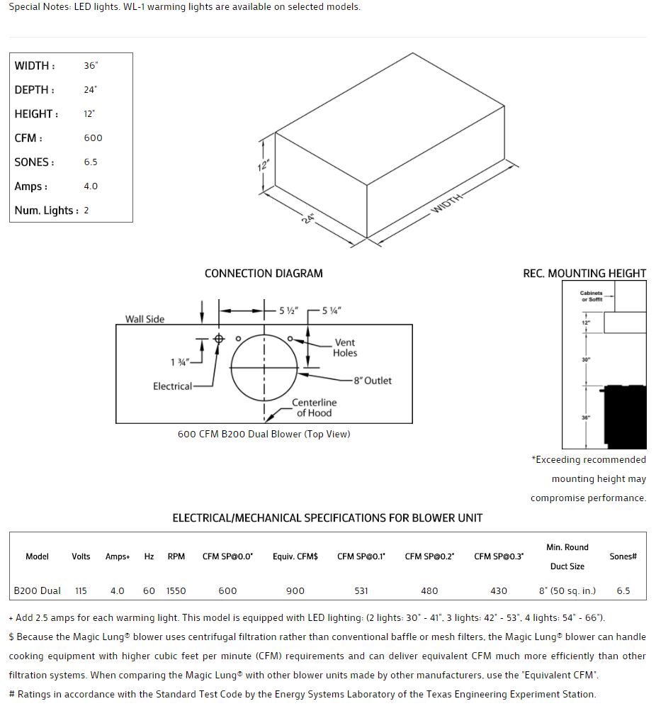 Stand-alone hood can have optional clipped or rounded corners. Add special offsets to create a lip. Optional rectangular, square or round duct covers are smart additions. Click on the models for a list of our base model numbers for standard sizes; simply select the model you need, and then specify the finish (painted, stainless steel, real brass, real copper, or hammered copper). Recommended mounting height is 30" above the cooking surface. All Vent-A-Hood products are suitable for use in damp locations (outdoor applications such as a covered patio) when installed in a GFCI protected branch circuit.