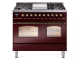 40" ILVE Nostalgie II Dual Fuel Natural Gas Freestanding Range in Burgundy with Bronze Trim - UPD40FNMP/BUB NG