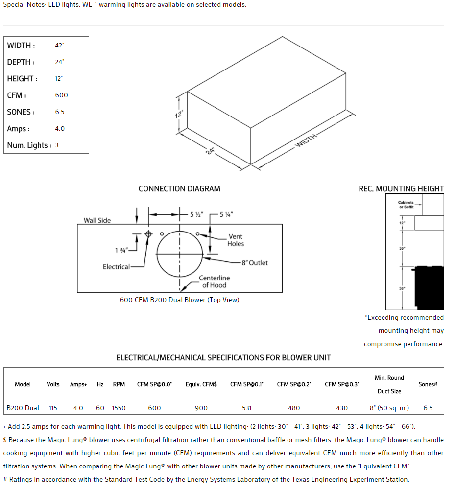 Stand-alone hood can have optional clipped or rounded corners. Add special offsets to create a lip. Optional rectangular, square or round duct covers are smart additions. Click on the models for a list of our base model numbers for standard sizes; simply select the model you need, and then specify the finish (painted, stainless steel, real brass, real copper, or hammered copper). Recommended mounting height is 30" above the cooking surface. All Vent-A-Hood products are suitable for use in damp locations (outdoor applications such as a covered patio) when installed in a GFCI protected branch circuit.