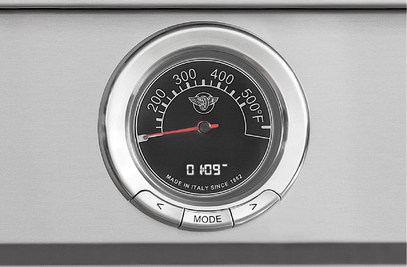 Bertazzoni engineers have worked to design a highly efficient worktop by reducing the flame-to-cookware distance for faster heating. More lateral space has been created between the burners so you can use larger cookware more effectively. This digital thermostat and user interface make cooking a large variety of dishes at exactly the right temperature simple. It constantly monitors the temperature at the heart of the dish and adjusts the oven temperature automatically for even cooking and perfect results every time.