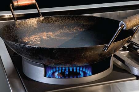 The Culinarian wok grate switches out with any standard burner grate on the cooktop when in use. Made with a matte porcelain, it is commercial-quality, will fit most wok sizes, shields the chef from heat and is easy to clean.