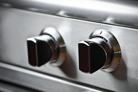 Heavy duty, die cast, chrome-plated metal knobs with plastic inserts that stay cool.