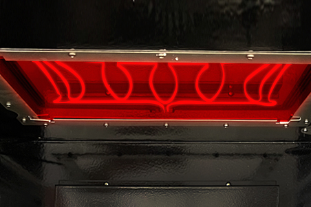 - Ribbon Broil Element under glass results in BBQ-quality searing