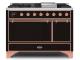 48" ILVE Majestic II Dual Fuel Natural Gas Freestanding Range in Glossy Black with Copper Trim - UM12FDQNS3/BKP NG